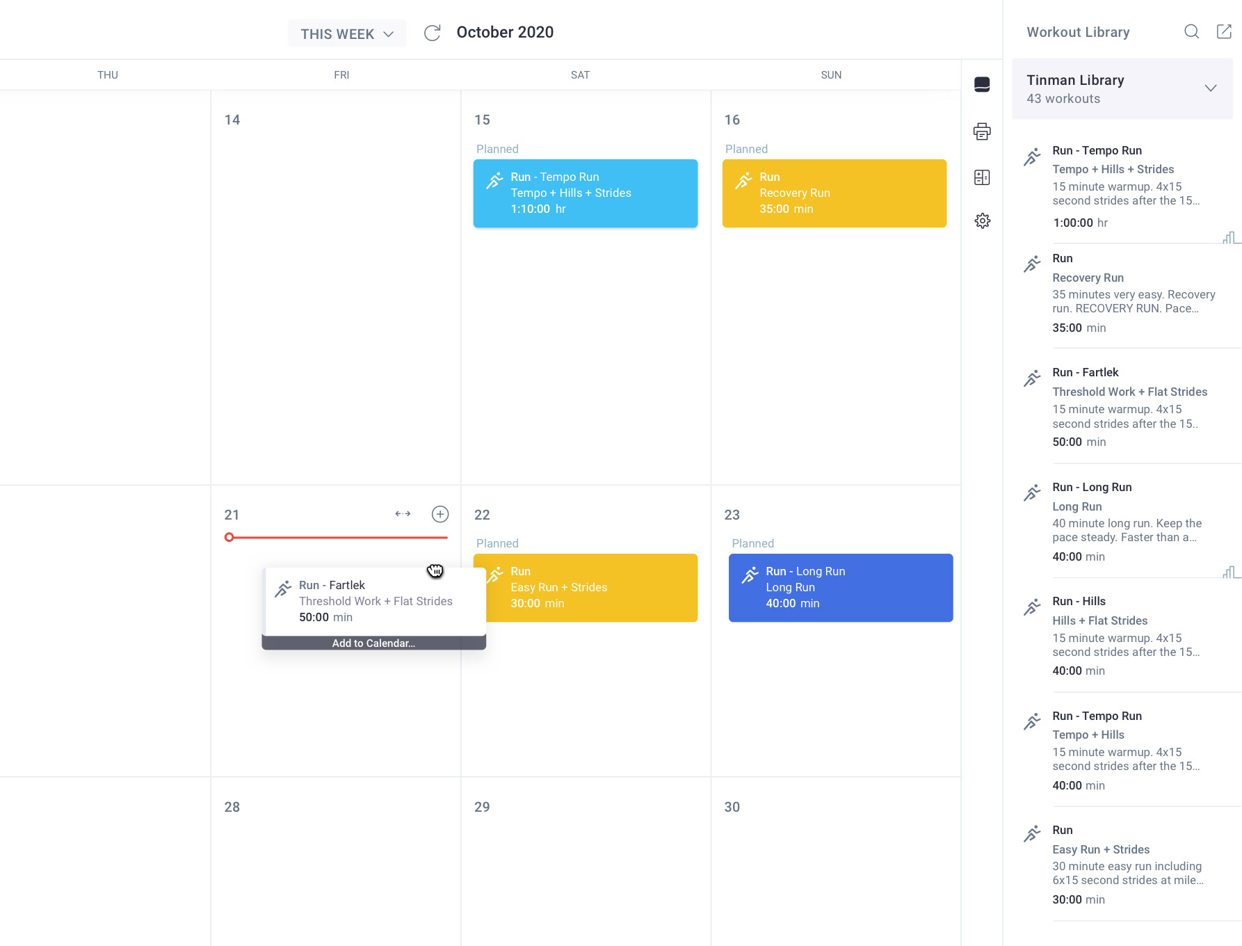 Drag and drop training activities on athlete calendars from your workout library, copy weeks of training, save and apply full training plans, plus more.