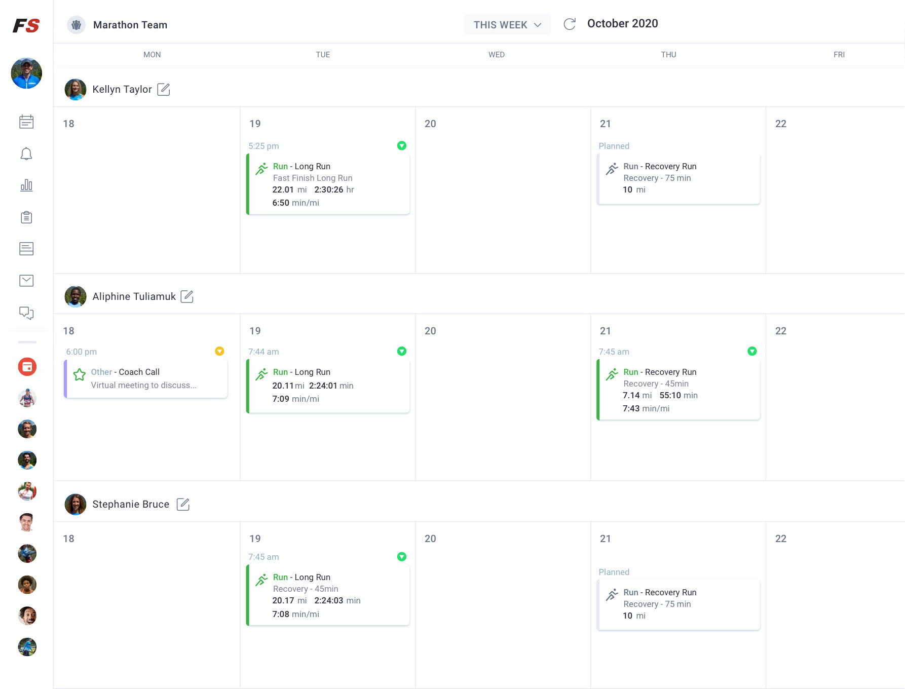 Multi-calendar view allows you to streamline team coaching for multiple disciplines or training groups.