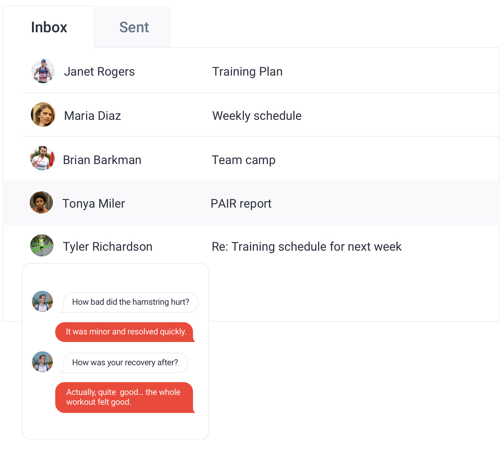 Discuss individual workouts via Workout Comments or send messages to individuals, multiple athletes and teams using the Mailbox feature.