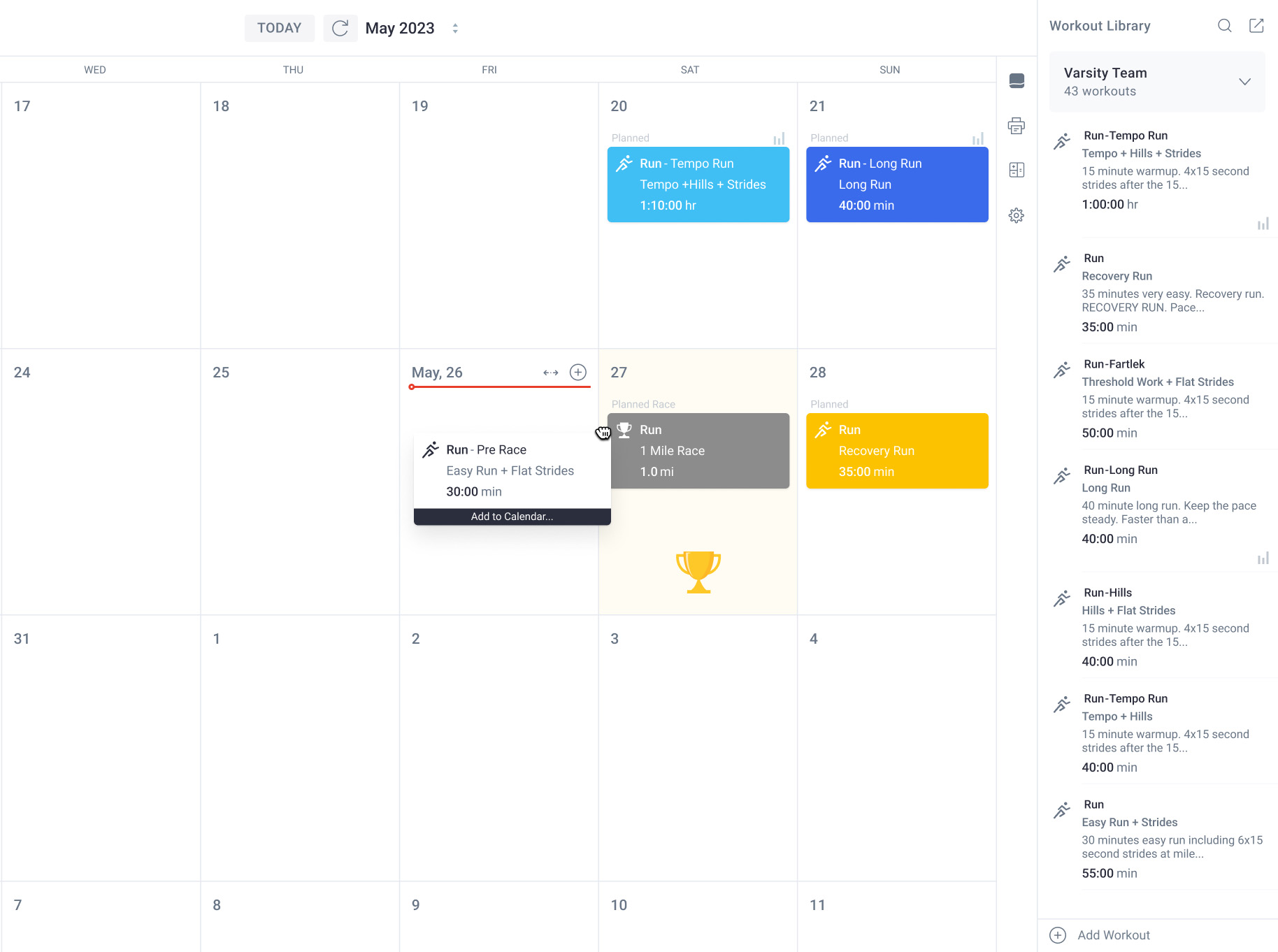 Coaches can attach videos, images, PDFs and other files directly to workouts. Great for strength training and drill routines!