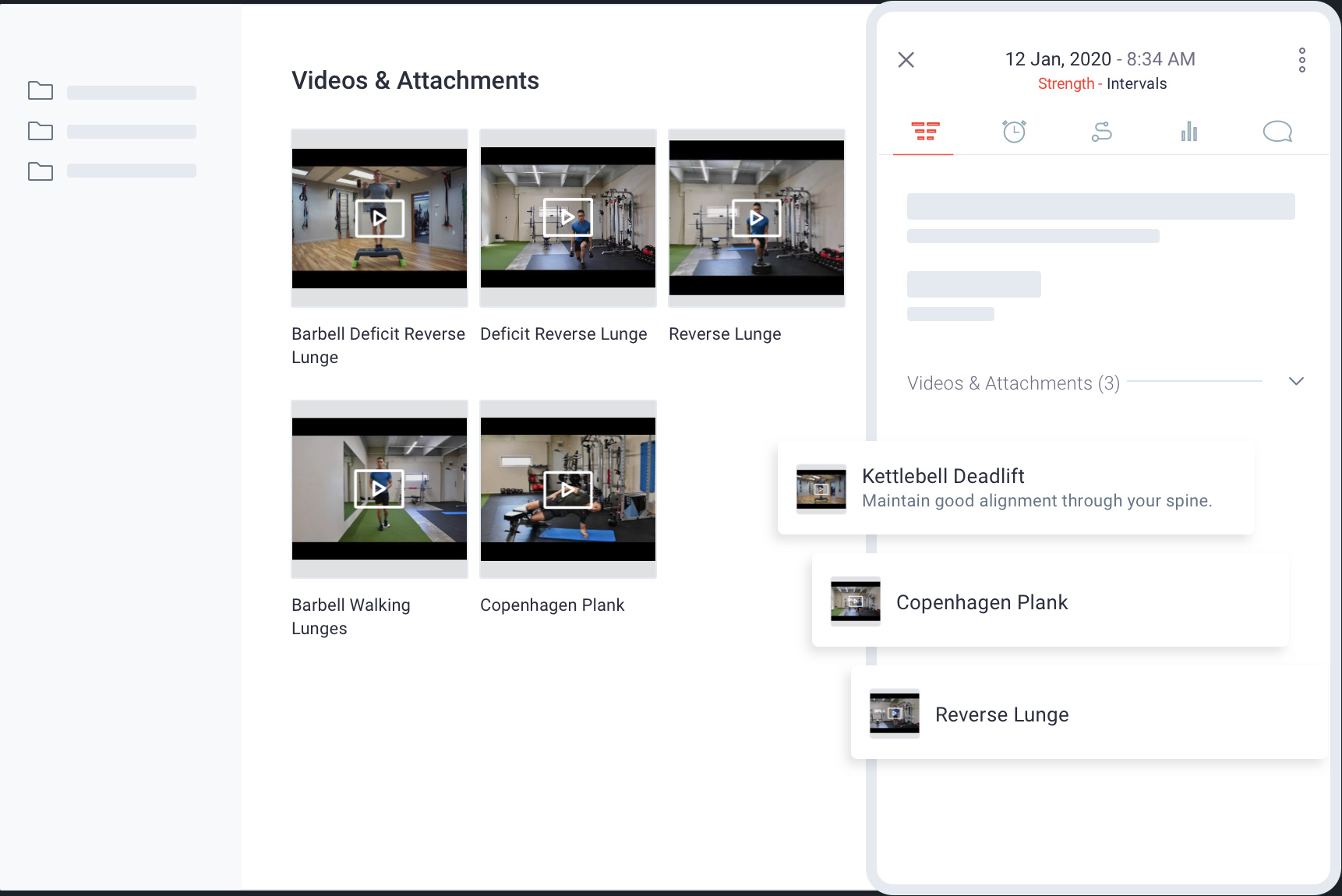 Attach individual videos, images, PDFs and other files directly to workouts for athletes to view.